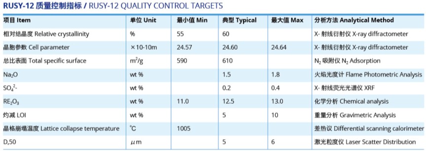 RUSY-12稀土Y分子篩,含RE2O3混合氧化稀土≥12%,根據(jù)用戶需要,可以調(diào)節(jié)稀土中La2O3和CeO2的比例。